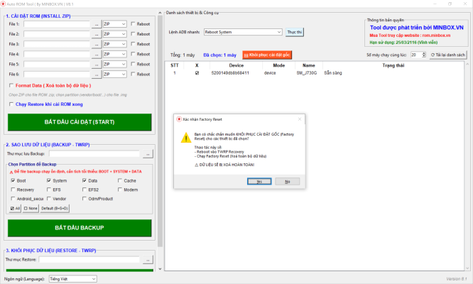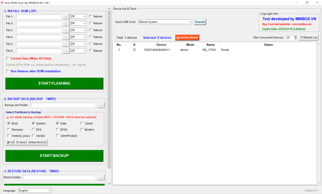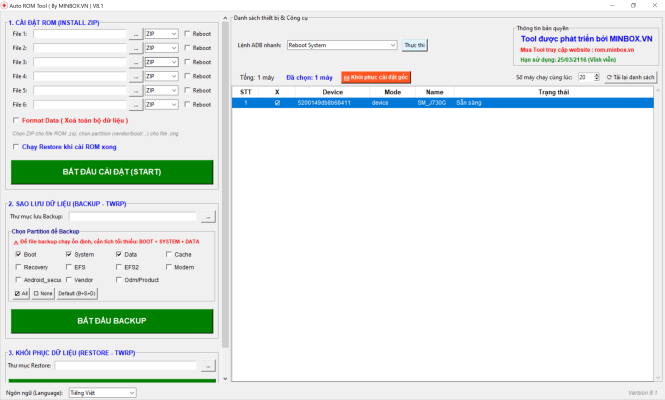 - Với AUTO ROM TOOL BY MINBOX bạn có thể cài ROM cho hàng trăm, thậm chí hàng ngàn thiết bị cùng lúc, giúp tiết kiệm đáng kể thời gian và công sức.